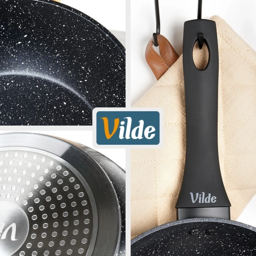 - Confort la gătit: mâner plăcut soft touch, greutate redusă și centru de greutate echilibrat.