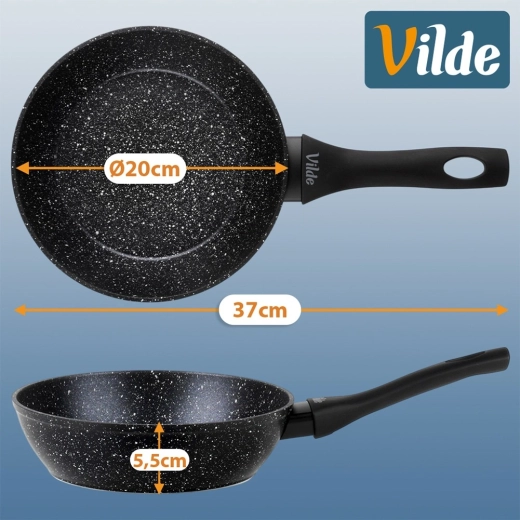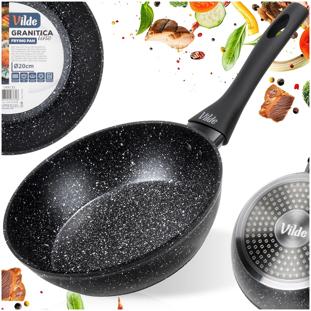 Tigaie compactă din granit, cu diametrul de 20 cm și volum de 1,2 l, pentru gătit zilnic. Oferă suprafață antiaderentă tip piatră, distribuție rapidă și uniformă a căldurii și utilizare universală pe toate tipurile de plite, inclusiv inducție. Mânerul ergonomic soft touch se potrivește excelent în mână, iar tigaia poate fi spălată în mașina de spălat vase.