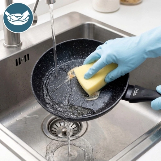 Suprafața durabilă de tip piatră minimizează lipirea, permite gătirea cu mai puțin ulei și facilitează semnificativ curățarea.
