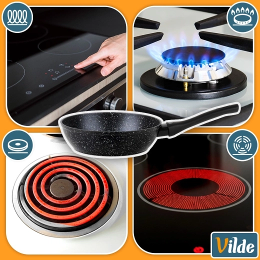 Fundul gros asigură încălzire rapidă și economică și o distribuție uniformă a căldurii. Mânerul ergonomic cu suprafață moale soft touch oferă o prindere sigură și are un orificiu practic pentru agățare. Tigaia este compatibilă cu toate tipurile de plite – inducție, gaz, electrică și vitroceramică și poate fi spălată în mașina de spălat vase.