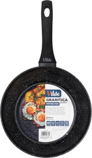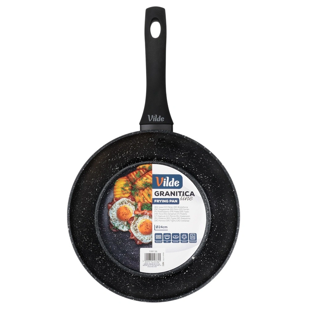 Tigaie universală din granit cu diametrul de 24 cm pentru gătit zilnic. Datorită stratului antiaderent din granit gătești cu minim de grăsime, rapid și uniform. Mânerul ergonomic soft touch se potrivește perfect în mână și este plăcut la atingere. Tigaia este potrivită pentru toate tipurile de plite, inclusiv inducție și poate fi spălată în mașina de spălat vase.