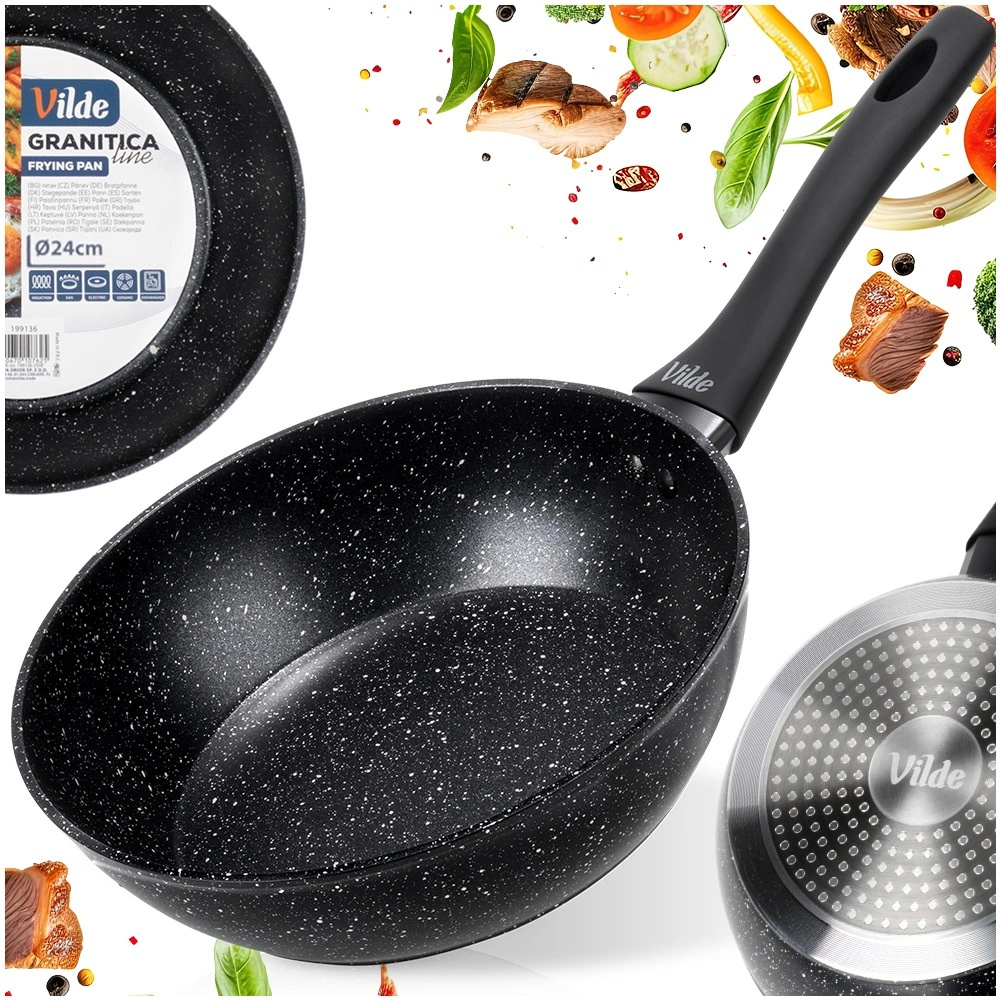Stratul durabil din granit previne lipirea și permite o preparare mai sănătoasă a mâncărurilor cu o cantitate minimă de ulei. Curățarea este rapidă și fără efort.