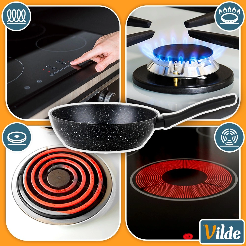 Datorită compatibilității universale, o poți folosi pe plite cu inducție, pe gaz, electrice și vitroceramice. Întreținerea este fără griji – suprafața se curăță ușor, iar tigaia este potrivită pentru mașina de spălat vase.