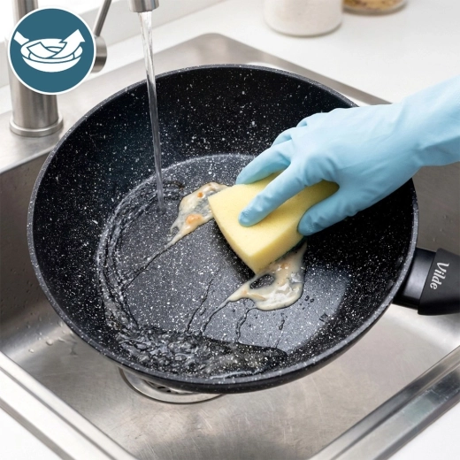 Preparatele nu se lipesc și alunecă ușor pe suprafață – prăjești cu minimum de ulei și cureți fără frecare.