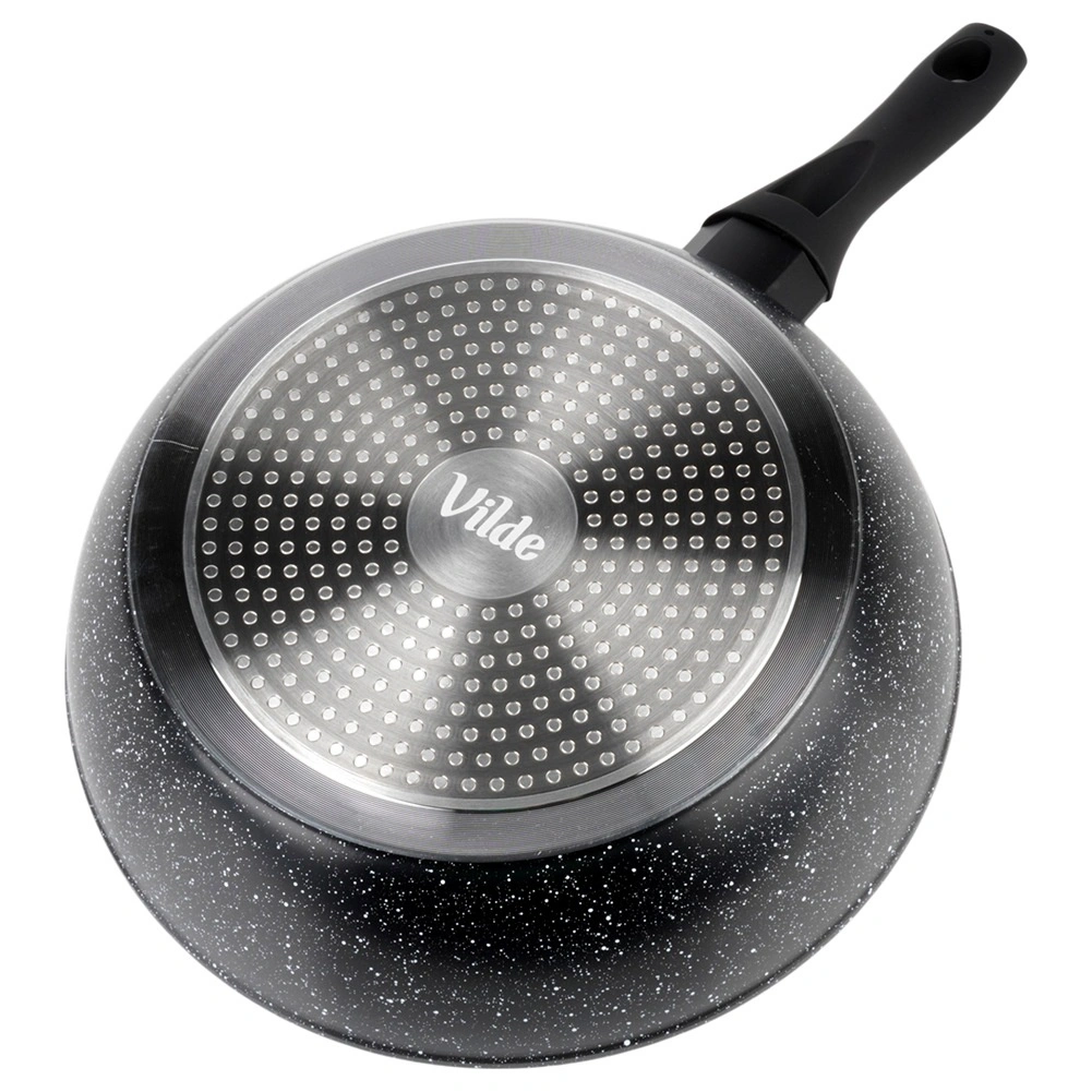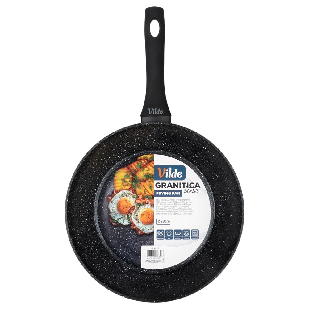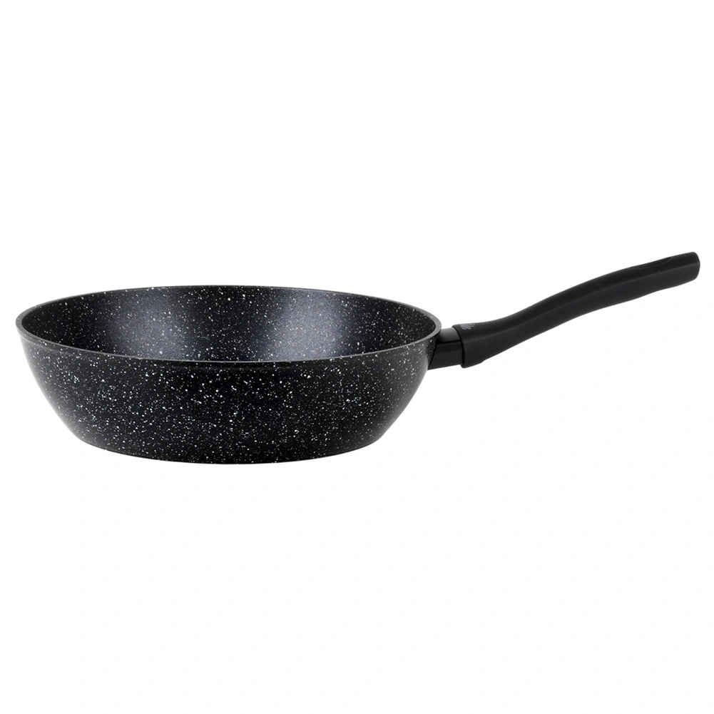 Tigaie practică din granit, cu diametrul de 28 cm, pentru gătit zilnic. Datorită suprafeței antiaderente din granit prăjești cu minim de grăsime, iar corpul solid din aluminiu asigură distribuție rapidă și uniformă a căldurii. Mânerul ergonomic soft touch este confortabil și sigur, tigaia este potrivită pentru toate tipurile de aragaz, inclusiv inducție și poate fi spălată în mașina de spălat vase.