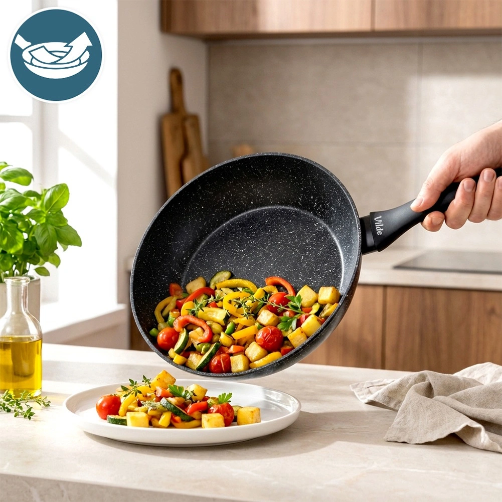 - Gătit cu minim de grăsime – rezultate mai sănătoase datorită suprafeței antiaderente.