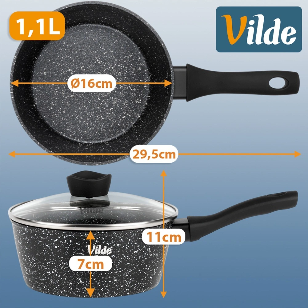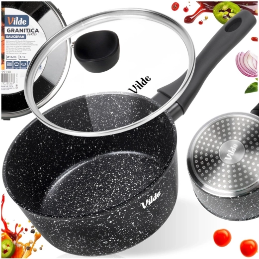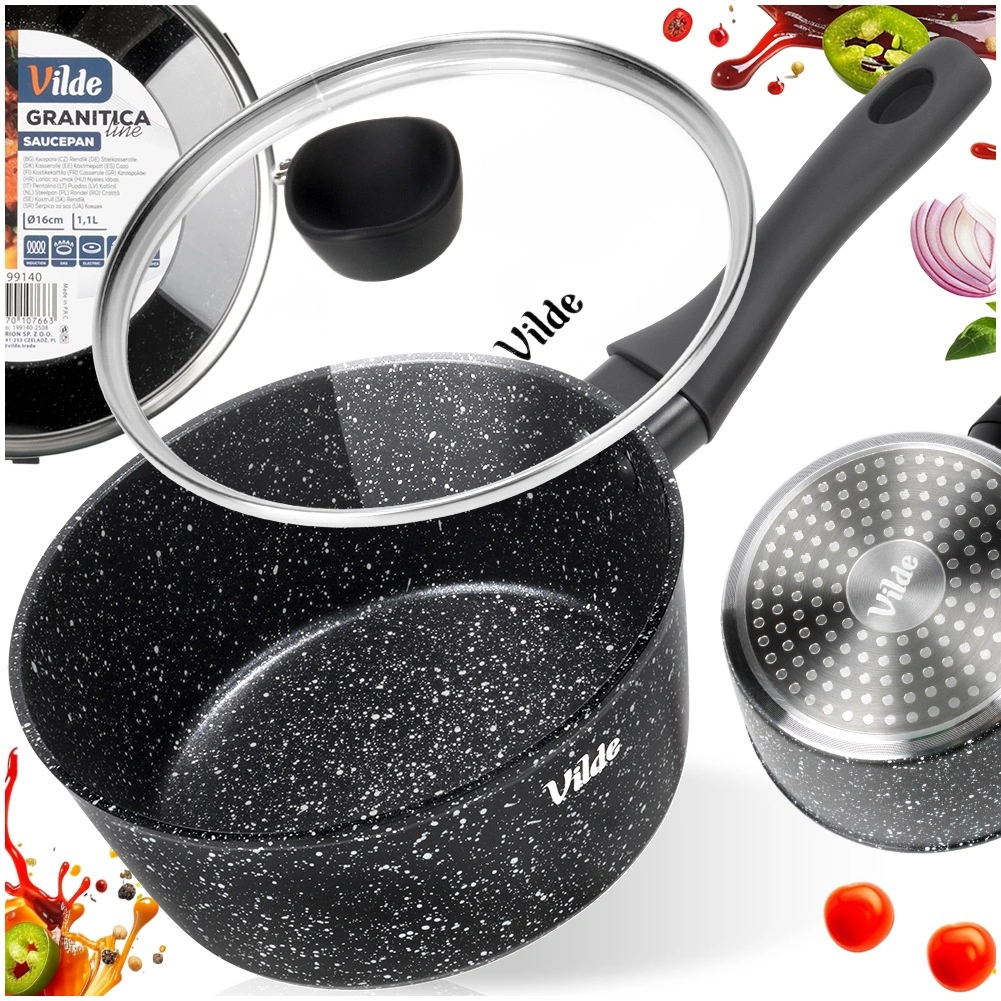 Cratița compactă Vilde din linia GRANITICA cu diametrul de 16 cm și volumul de 1,1 l este ideală pentru gătitul zilnic. Datorită acoperirii antiaderente granitice vei prepara mâncăruri cu minimum de grăsime, capacul de sticlă cu orificiu pentru evacuarea aburului ușurează controlul gătirii, iar mânerul ergonomic soft touch asigură o prindere sigură. Potrivit pentru toate tipurile de plite, inclusiv inducție și pentru mașina de spălat vase.