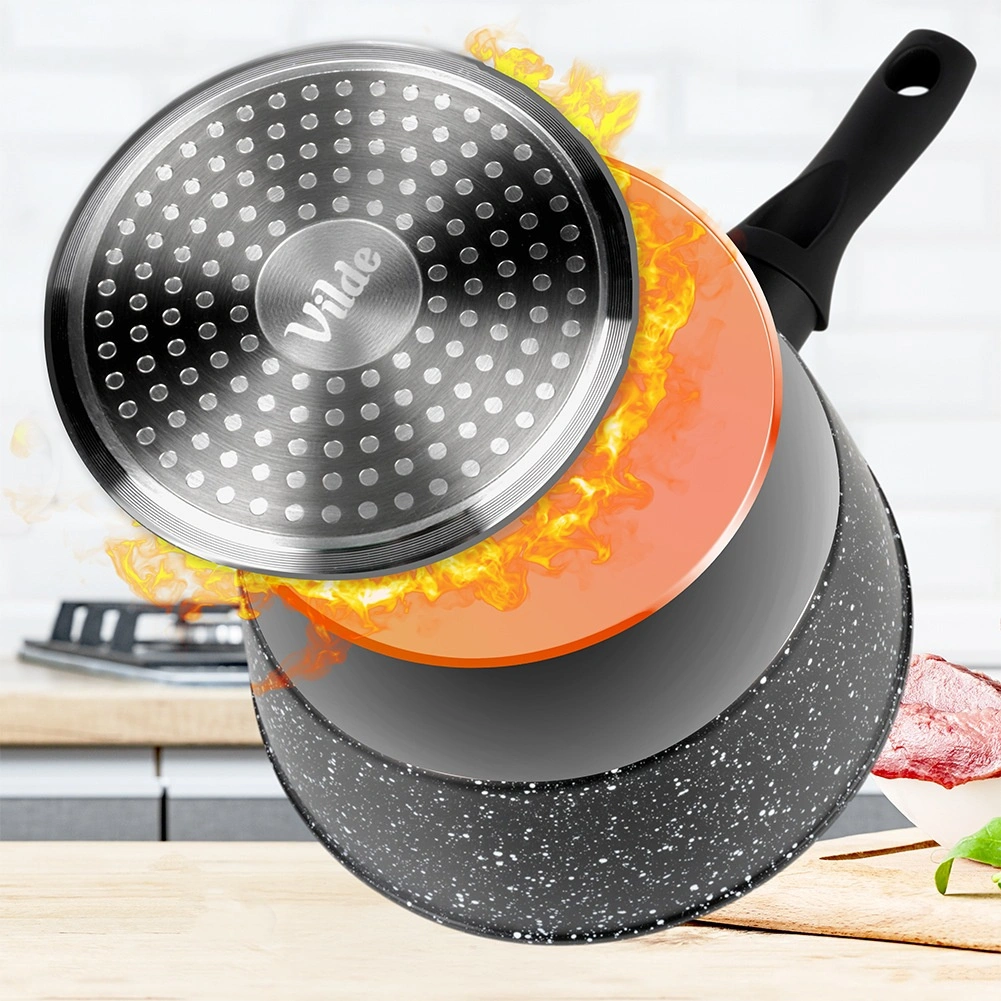 Stratificarea multiplă granitică minimizează lipirea și permite gătitul cu o cantitate redusă de grăsime. Curățarea este rapidă și fără efort.