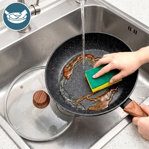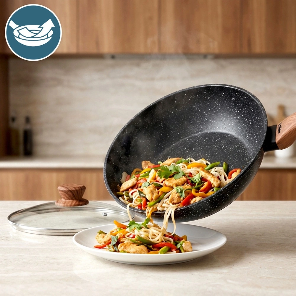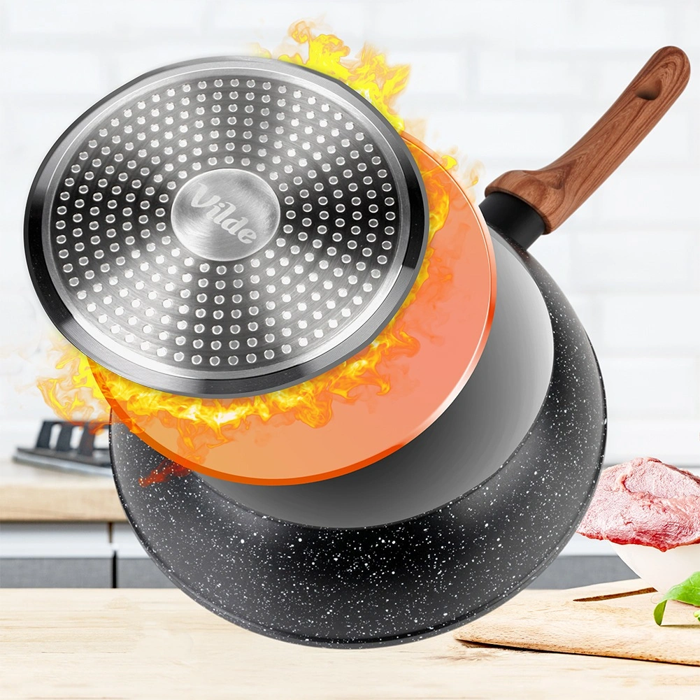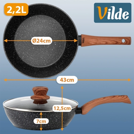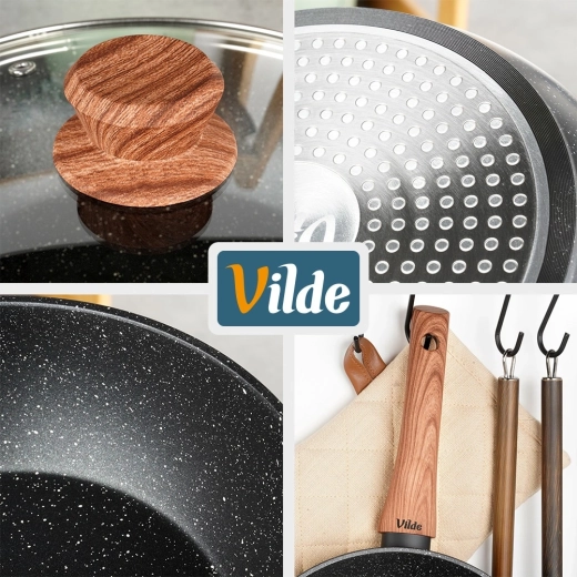 Datorită formei universale, face față tuturor: de la sotarea rapidă a legumelor și până la sosuri, risotto, gulaș sau preparate gratinate. Mânerul ergonomic cu plăcutul finisaj soft touch în decor de lemn asigură o prindere sigură și confortabilă.