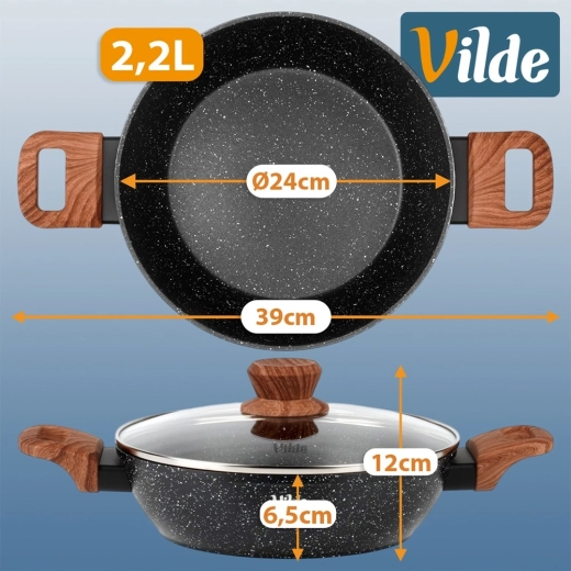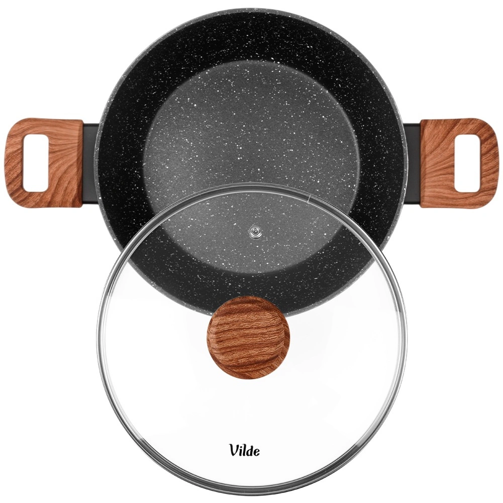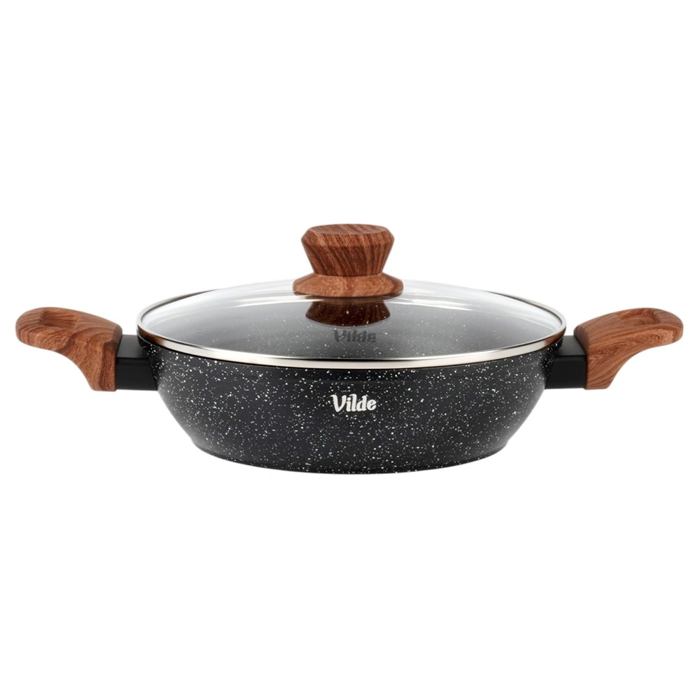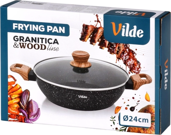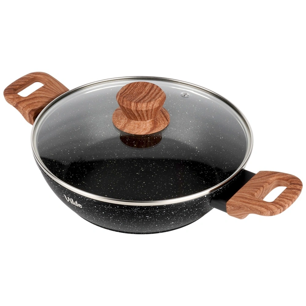Tigaie adâncă practică, cu volum de 2,2 l, cu capac de sticlă pentru gătitul zilnic. Datorită stratului antiaderent din granit, distribuției uniforme a căldurii și mânerelelor soft touch cu decor de lemn, pregătiți cu ușurință mâncăruri prăjite, înăbușite și gratinate cu minimum de grăsime. Capacul din sticlă termorezistentă cu supapă de abur permite controlul comod al gătitului. Potrivită pentru inducție, gaz, electric și ceramic și se poate spăla în mașina de spălat vase.