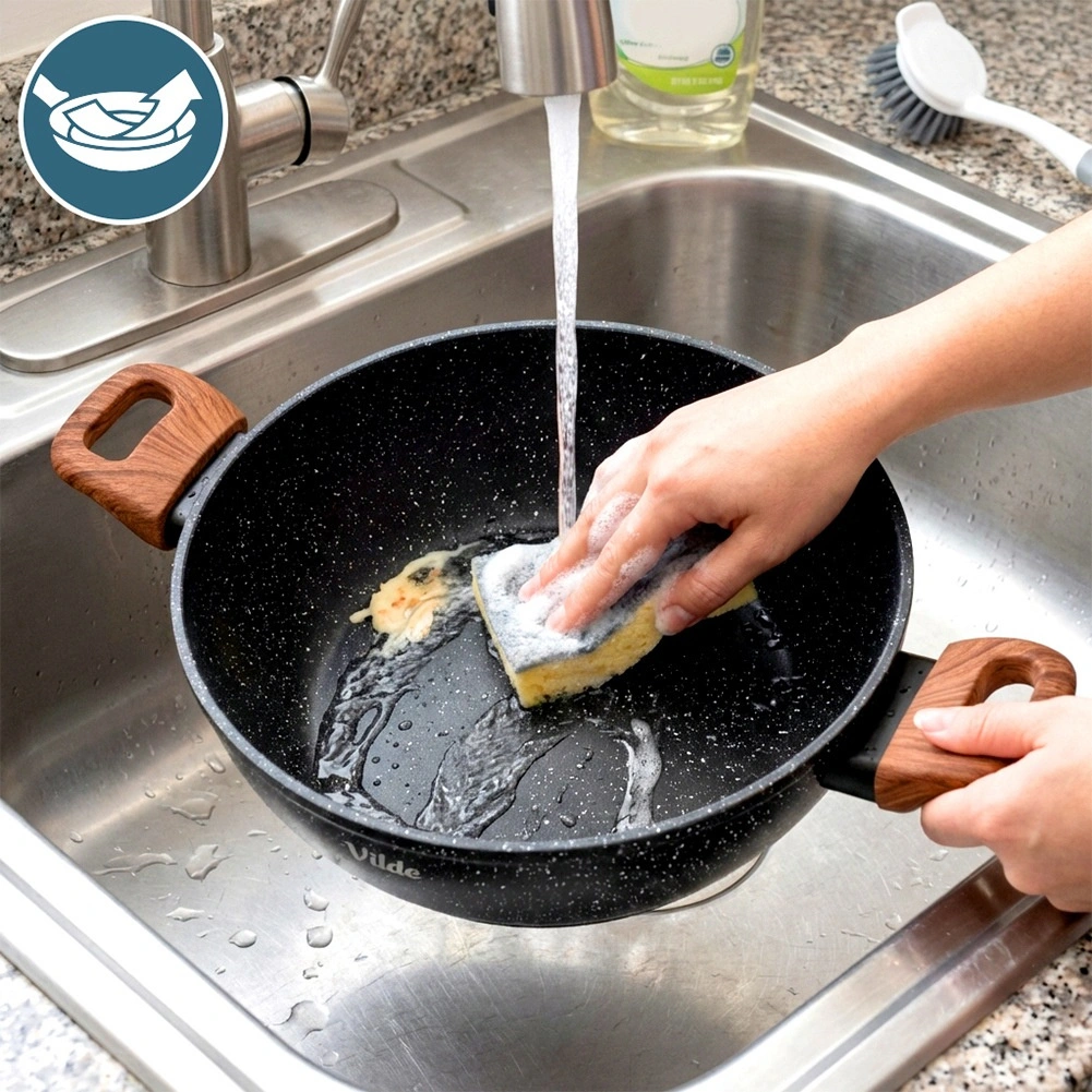 Acoperirea durabilă din granit asigură încălzire uniformă și eliberarea ușoară a preparatelor, fără lipire. Ideală pentru gătit mai sănătos și curățare rapidă.