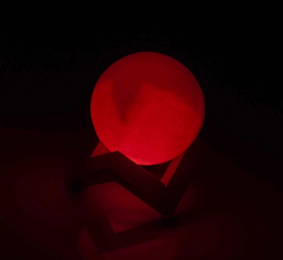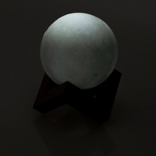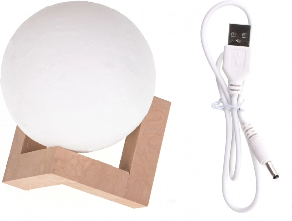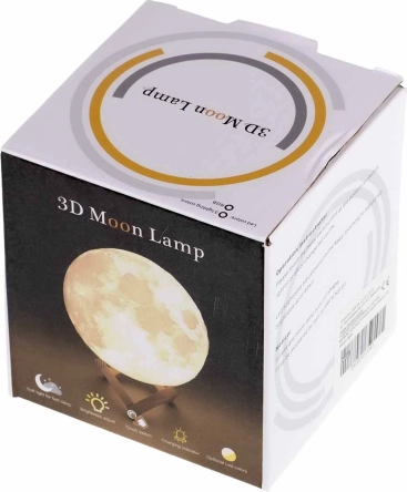 Pe lampa lunară veți descoperi și cele mai diverse cratere, la fel ca pe Luna reală. Lampa poate fi reîncărcată cu ajutorul unui cablu USB, care este inclus în pachet. Cu ajutorul șnurului care este inclus în pachet, puteți să agățați Luna. Cu ajutorul suportului o puteți așeza pe noptieră.