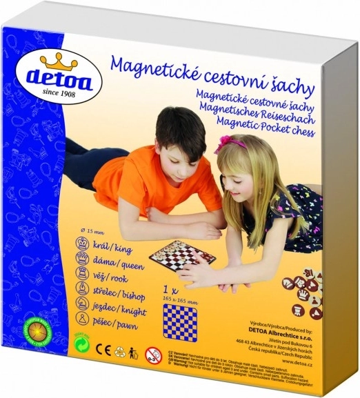Șahul magnetic de călătorie Detoa oferă distracție grozavă pentru întreaga familie. Setul conține o tablă metalică de șah cu dimensiunile 16,5x16,5 cm, care menține piesele în siguranță datorită substratului magnetic. Astfel, nu trebuie să vă faceți griji că piesele se vor mișca în timpul jocului.