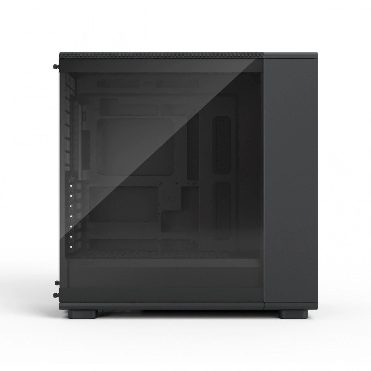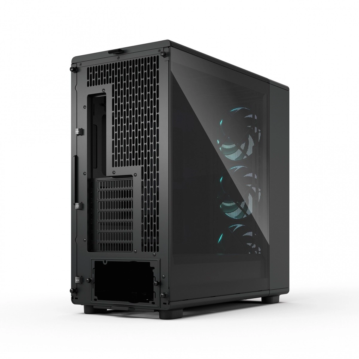 Construiește un PC cu estetică curată. Panoul lateral din sticlă securizată (light tint) evidențiază elementele RGB și componentele.