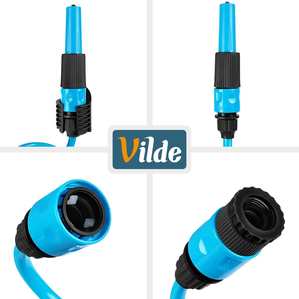Setul complet conține tot ce este necesar: doi conectori rapizi pentru conectare rapidă la robinet și accesorii, pistol de stropit pentru reglarea comodă a jetului de apă și suport de perete pentru depozitare ordonată. Construcția din plastic rezistent, de culoare albastră, asigură flexibilitate și durată de viață îndelungată.