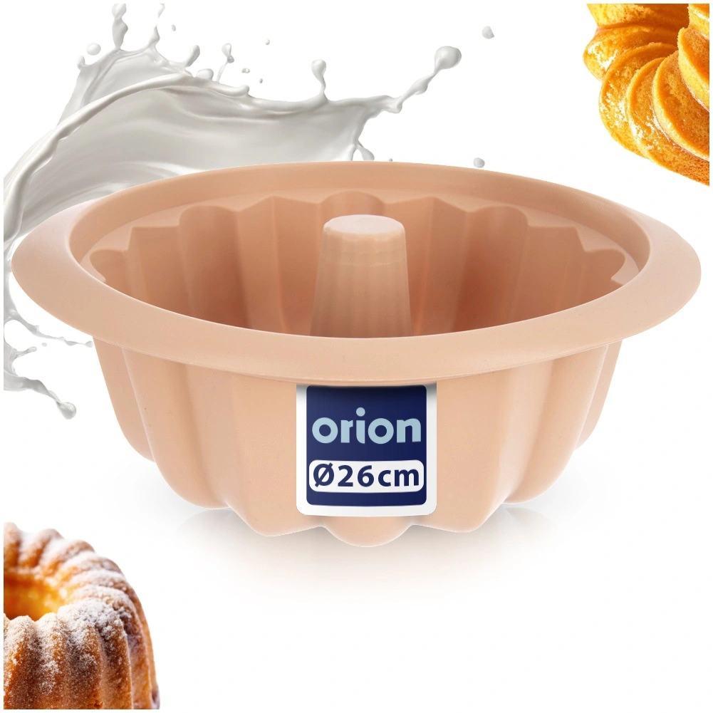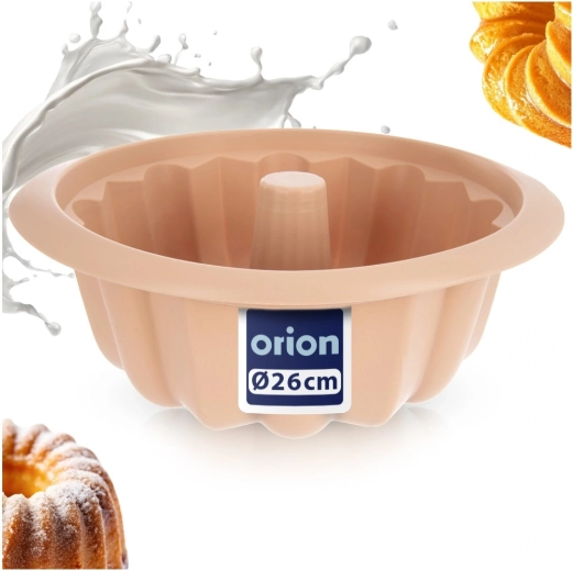 Cu această formă bej din silicon pentru guguluf veți obține deserturi perfect coapte și frumos conturate pentru orice ocazie. Datorită hornului central, căldura se distribuie mai rapid și mai uniform, astfel încât aluatul se coace pe întreaga înălțime a formei.