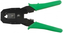 Clește de sertizare pentru 8P8C (RJ45), 6P6C (RJ12) și 6P4C (RJ11), cu lame interschimbabile pentru durată lungă de viață, tăiere și dezizolare într-o singură unealtă.