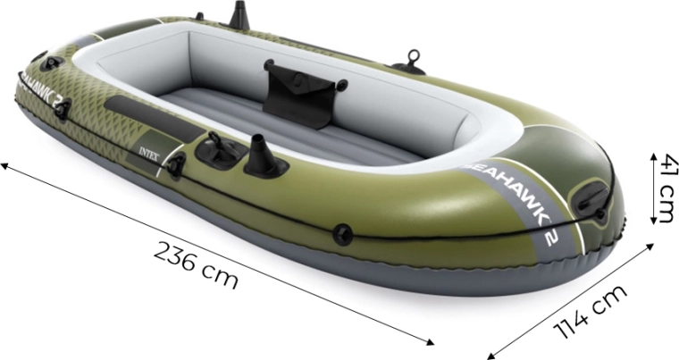 Descoperă barca pneumatică ușoară și stabilă INTEX Seahawk 2 pentru 2 persoane – ideală pentru plimbări liniștite, pescuit și vacanțe la apă. Datorită PVC-ului durabil (0,50 mm), celor 3 camere de aer și valvelor Boston, se pregătește rapid și ușor pentru navigare. Pachetul include pompă manuală, 2 vâsle, petic de reparare și geantă. Sarcina maximă de 240 kg și posibilitatea de montare a unui motor electric (până la 1,1 kW) fac din această barcă o alegere excelentă pentru recreere confortabilă și sigură.