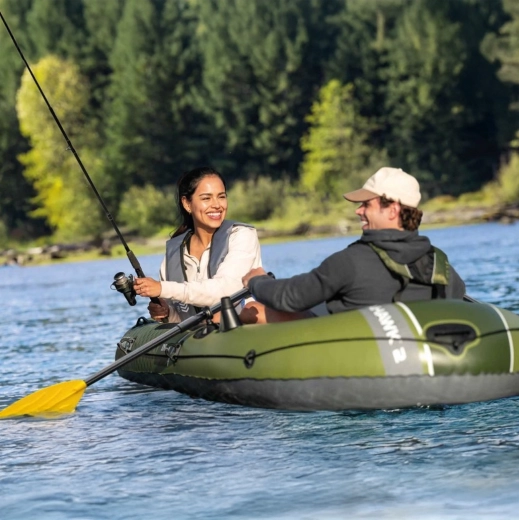 Barca pneumatică INTEX Seahawk 2 este un partener de încredere pentru relaxare și momente active la apă. Construcția cu podea pneumatică i-Beam asigură confort și stabilitate, iar frânghia de siguranță perimetrală facilitează transportul și manipularea. Suporturile pivotante pentru vâsle, buzunarul lateral practic și punctele de prindere integrate sporesc confortul la fiecare ieșire.