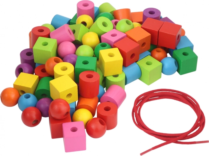 Mărgelele din lemn vin în diferite forme, cum ar fi sfere și cuburi, și în culori vii care ajută copiii să recunoască culorile.
