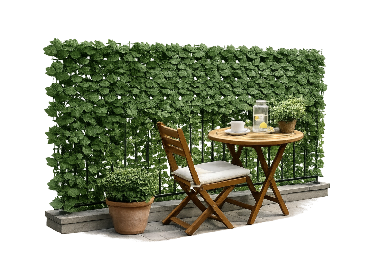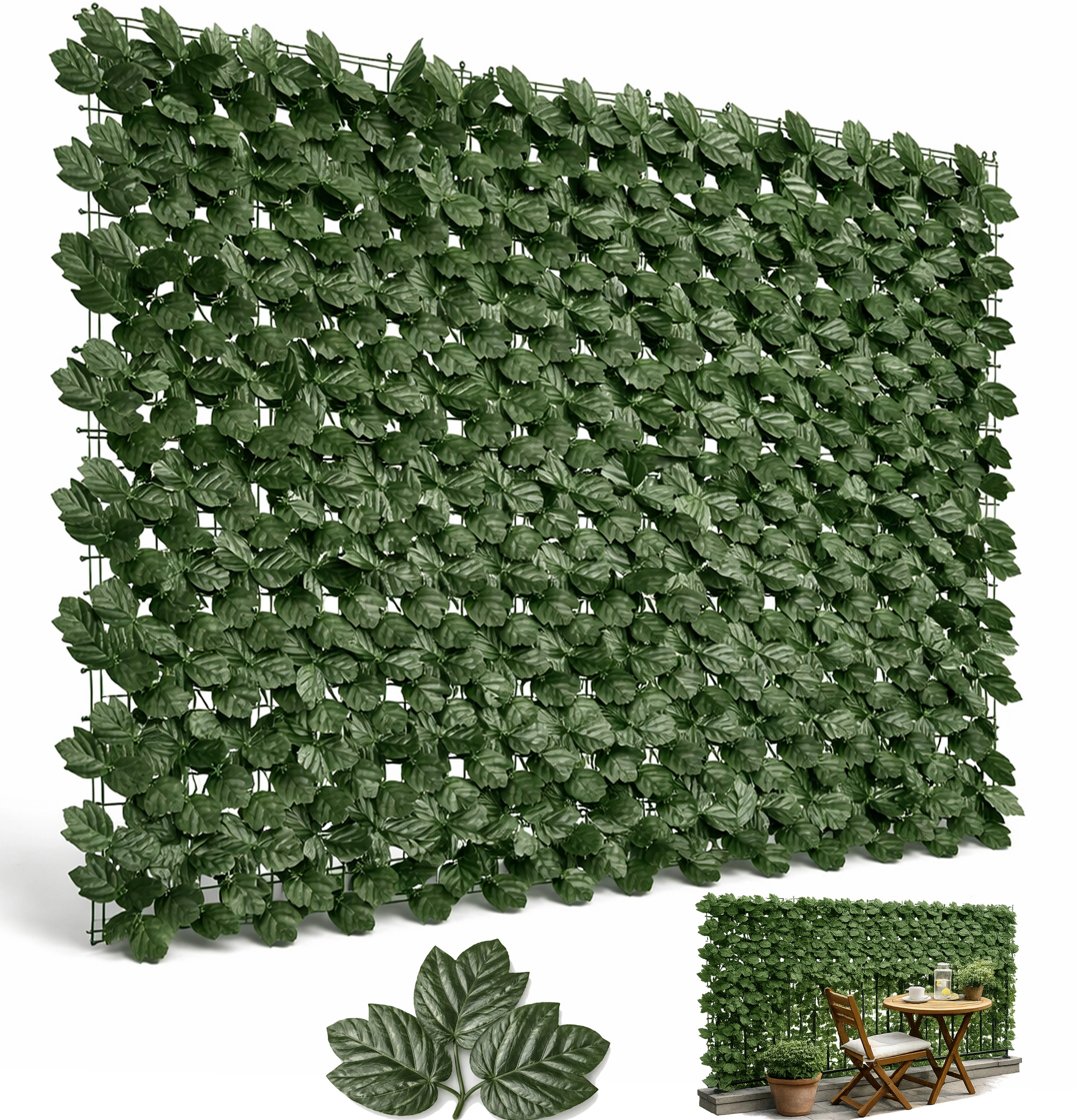 Gardul din iederă artificială este o alegere ideală pentru a asigura intimitatea pe balcon, terasă și în grădină. Datorită plasei flexibile cu frunze fixate dens, creează un perete verde cu aspect natural, care acoperă suprafețele inestetice și totodată reduce transparența prin gard sau balustradă.