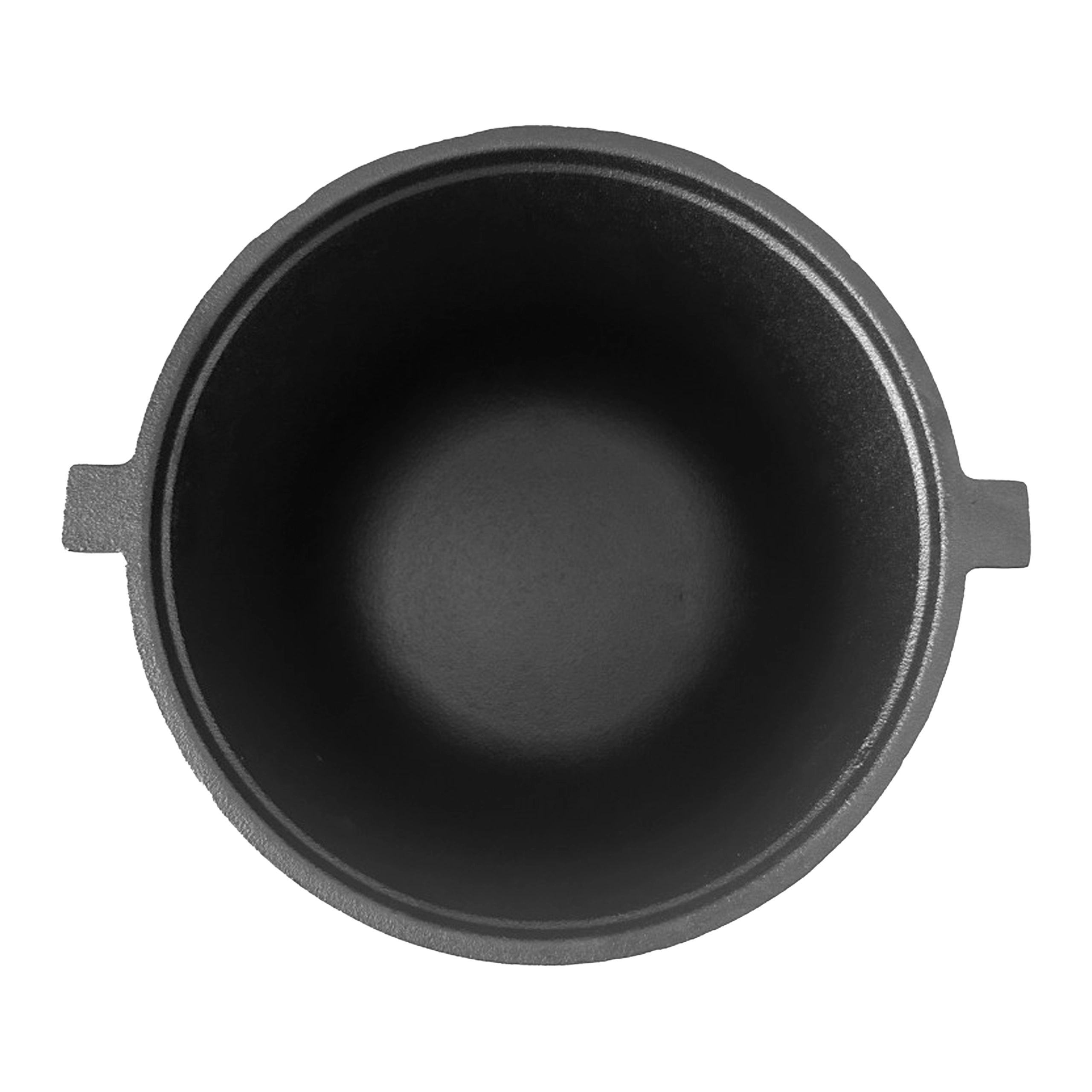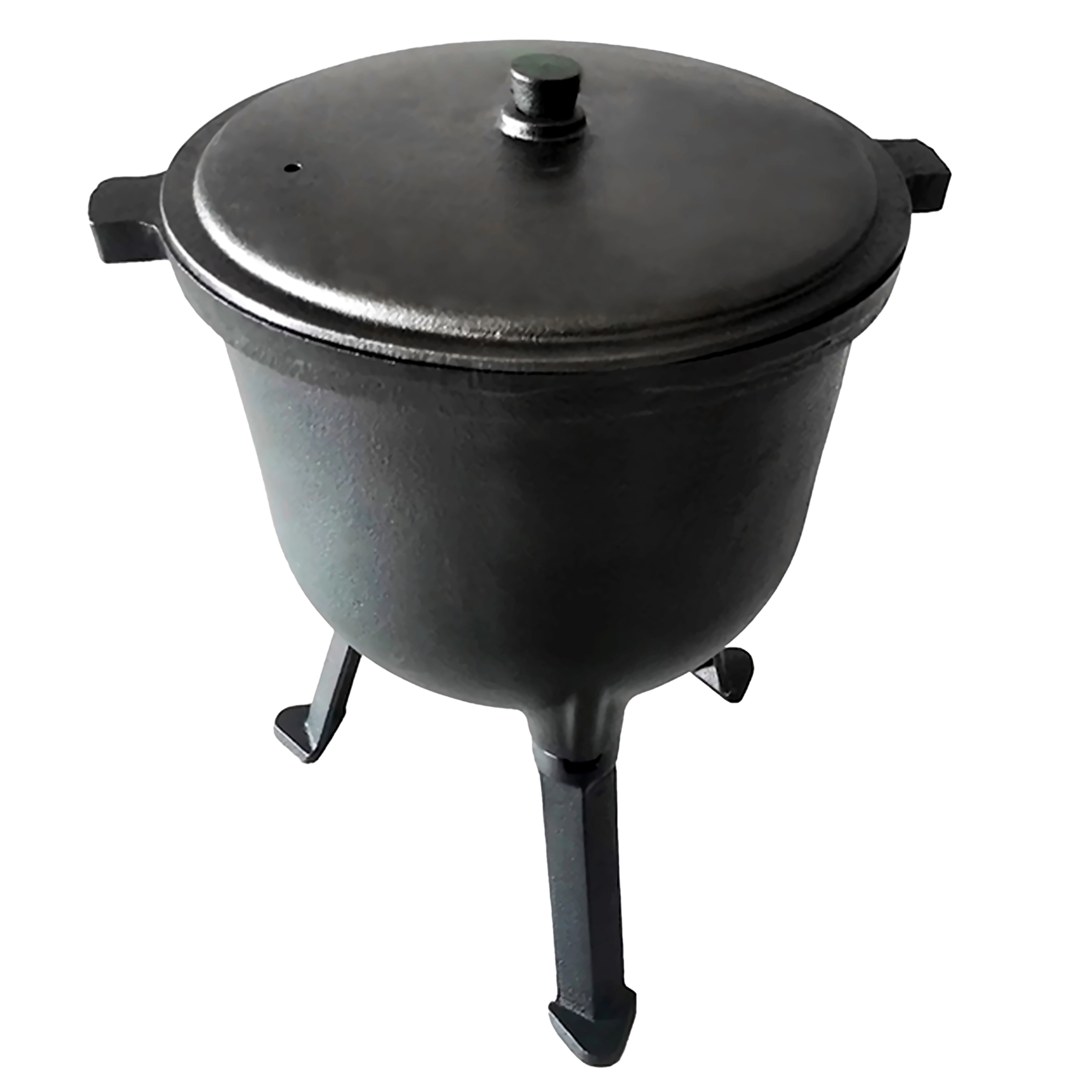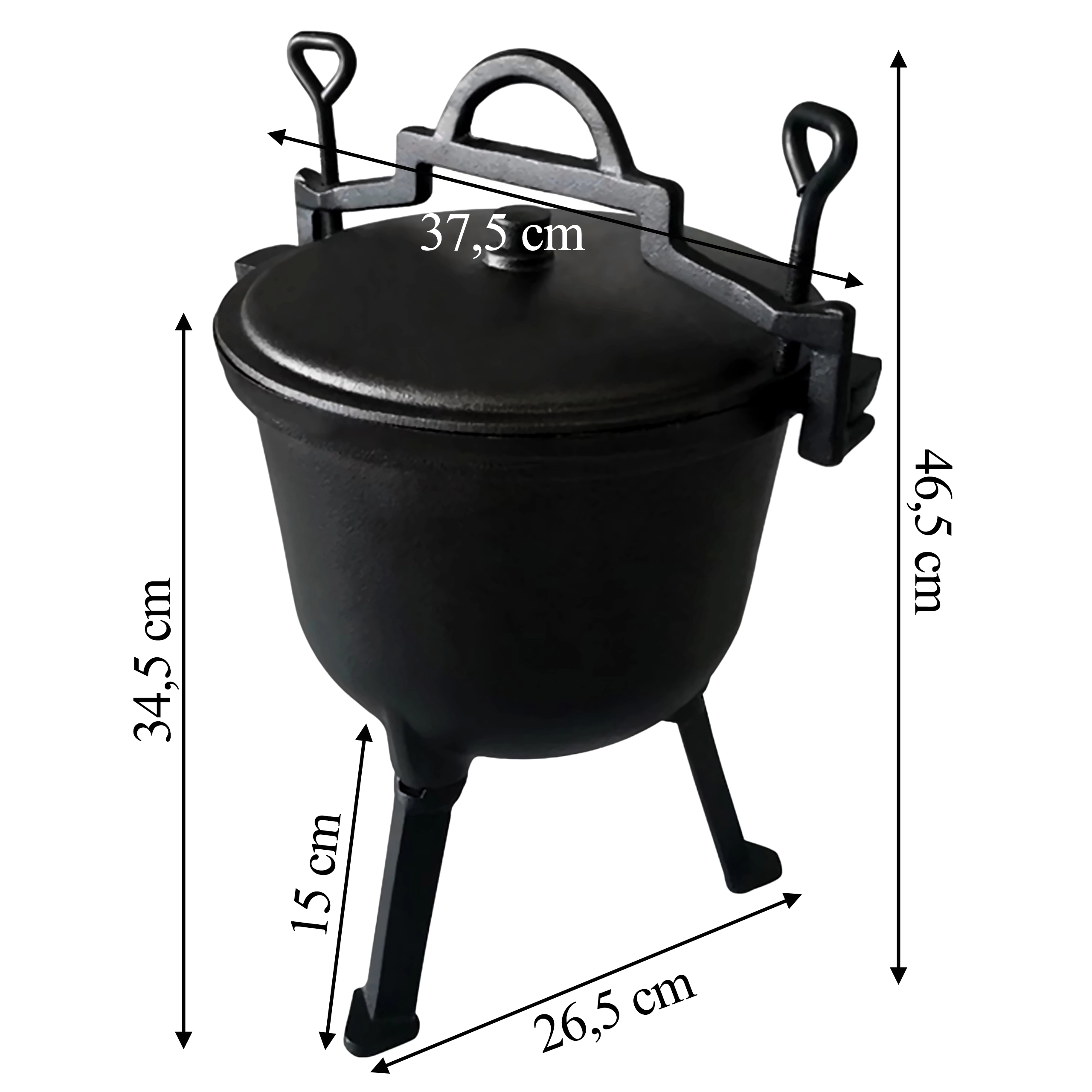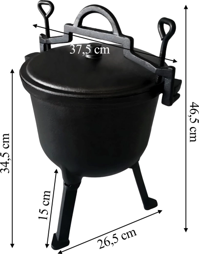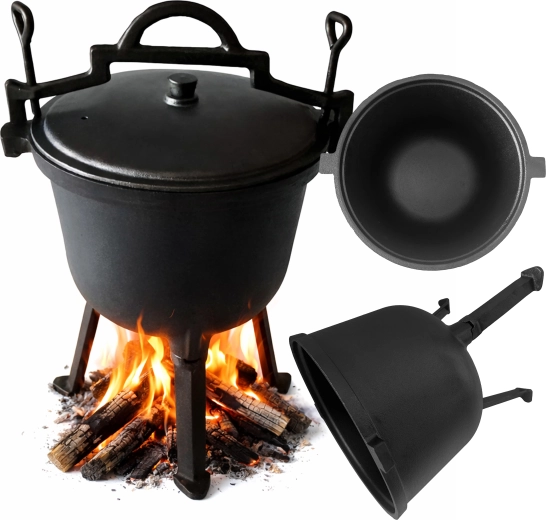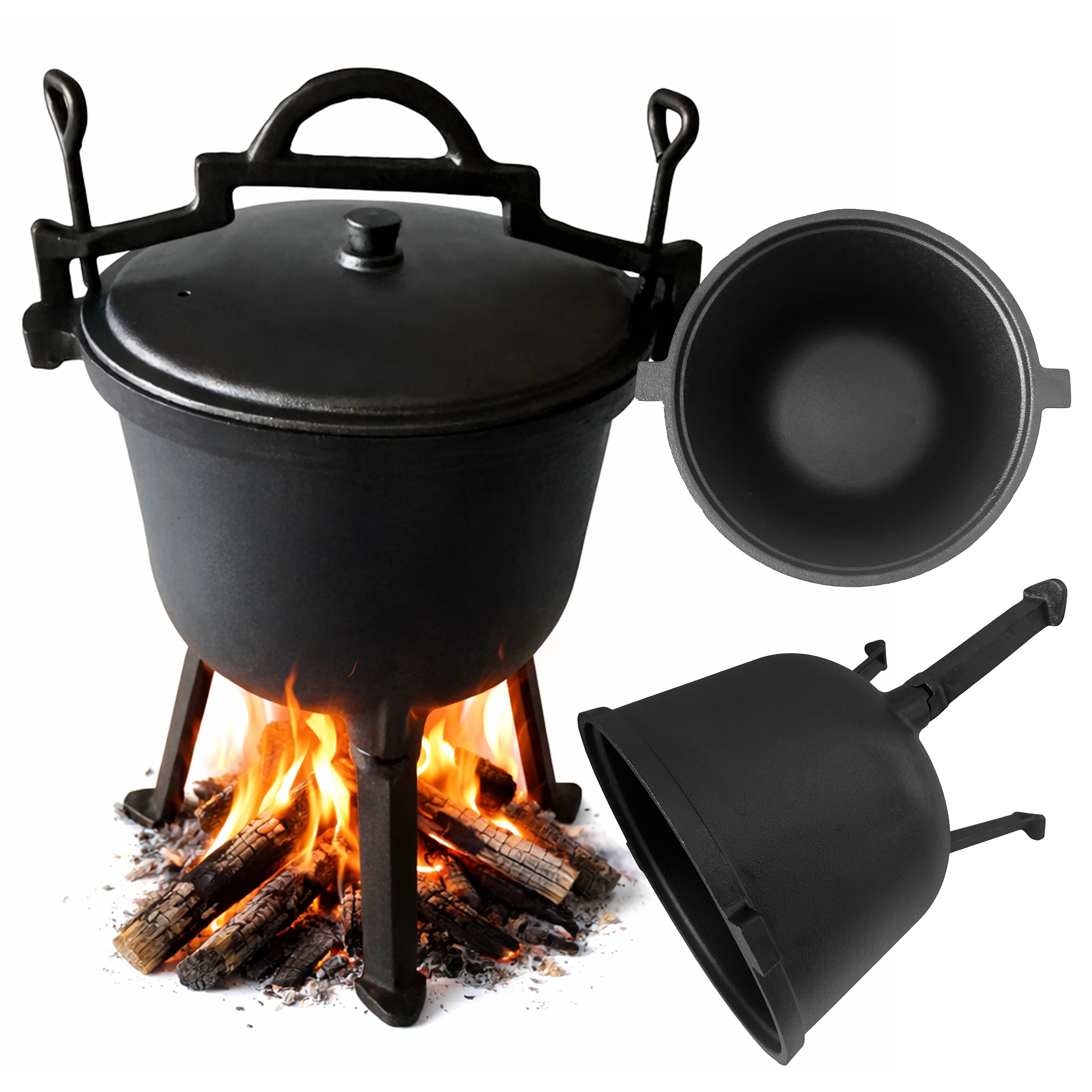 Bucură-te de gulaș, supe și mâncăruri înăbușite, gătite direct deasupra flăcărilor. Acest ceaun din fontă de 7 litri, cu capac, stă ferm pe trei picioare, astfel încât îl poți așeza ușor peste vatră fără un trepied separat. Fonta grea conduce și reține perfect căldura, datorită căreia mâncarea nu se răcește și nu se lipește.