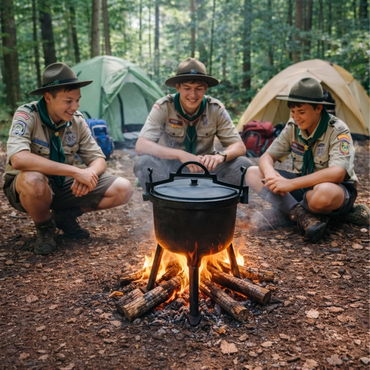 Capacul cu mâner practic păstrează umezeala și aroma în interior, astfel încât ingredientele se înăbușă uniform și rămân succoase. Ceaunul este în elementul său la petreceri în grădină, la campări cu cercetașii sau în expediții mai lungi – poți găti cu ușurință porții pentru întreaga gașcă.