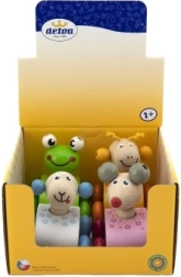 Disponibile în 4 motive îndrăgite – șoricel, oiță, girafă și broască. Fiecare animal are culori vii și o expresie drăguță, care stimulează imaginația și percepția senzorială. Jucăria ajută la dezvoltarea abilităților motorii, a prizei și a capacităților de coordonare ale copiilor.