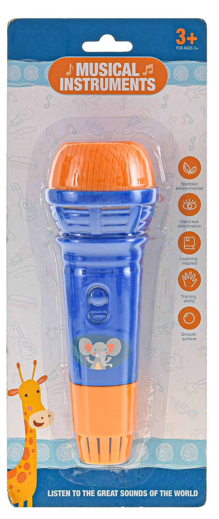 Un microfon distractiv pentru copii, cu lungimea de 18 cm, îi va încânta pe micii cântăreți de la 3 ani. Datorită efectelor sonore și manevrării ușoare, susține creativitatea, încrederea în sine pe scenă și bucuria pentru muzică. Materialul plastic rezistent și dimensiunea compactă se potrivesc perfect în mâinile copiilor. Disponibil în culorile verde și portocaliu, ambalat pe blister – un cadou ideal pentru micii muzicanți.