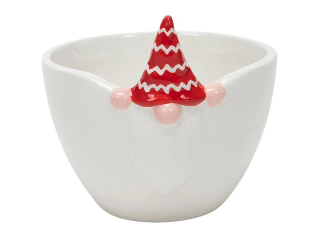 Bolul alb stilat cu spiriduș impresionează prin designul său drăguț și dimensiunile compacte de 7 × 10 cm. Este ideal pentru gustări mărunte, nuci sau decorațiuni și aduce interiorului o atmosferă primitoare. Datorită culorii albe universale, îl puteți combina ușor cu alte accesorii și crea o decorare sezonieră elegantă.