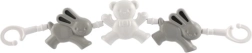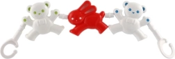 Lanțul pentru cărucior cu ursuleți și iepuraș este accesoriul ideal pentru distragerea copilului dumneavoastră. Datorită formelor diverse și culorilor strălucitoare, ajută la dezvoltarea motricității fine și a simțurilor bebelușului dumneavoastră. Conexiunea simplă prin cârlige la ambele capete permite o fixare rapidă și ușoară la cărucior sau pătuț.