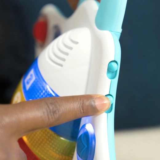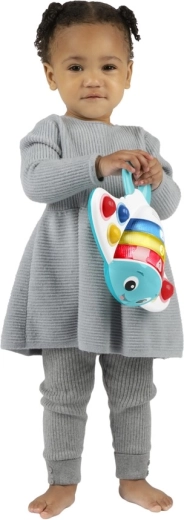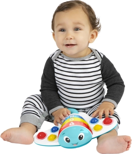Jucăria interactivă în formă de dracon de mare adorabil aduce copiilor o combinație captivantă de efecte luminoase, melodii și stimulare tactilă. Șase bule „pop” din silicon invită la apăsare, antrenând degețelele și susținând coordonarea mână–ochi. Datorită celor trei versiuni lingvistice, bebelușii și toddleri se familiarizează natural cu culorile, formele și numerele.