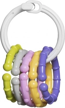 Descoperiți zornăitoarea îndrăgită de copii – inelul cu pandantive colorate, care atrage atât privirea, cât și auzul și îi motivează pe cei mici să exploreze în mod natural. Datorită greutății reduse și formei, se potrivește sigur în mânuța mică și ajută la dezvoltarea prinderii, a coordonării și a primelor manipulări ale obiectelor.