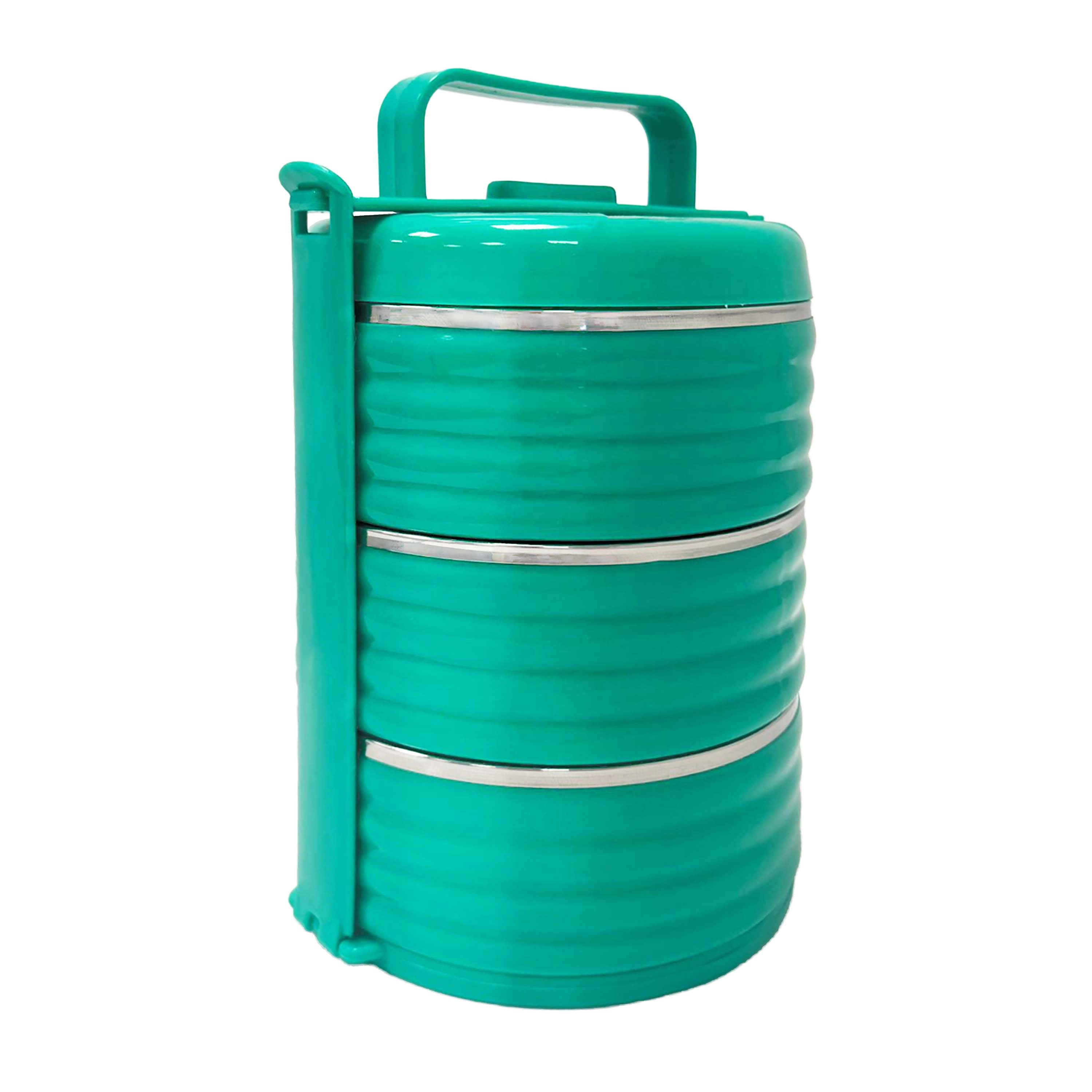 Bucură-te de transportul comod al prânzurilor la serviciu, școală sau cantină cu recipientul alimentar TORO. Trei boluri practice din plastic rezistent cu interior din inox păstrează preparatele igienic și fără mirosuri nedorite. Bolul superior este prevăzut cu capac, celelalte boluri se stivuiesc în siguranță, iar ansamblul este ținut la un loc de mânerul solid pentru o fixare sigură chiar și în timpul unei manipulări mai solicitante.