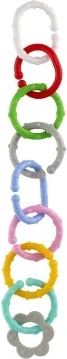 Acest set de inele și forme colorate este conceput pentru cei mai mici. Datorită culorilor, formelor și texturilor variate, copiii își dezvoltă în mod natural percepția senzorială și coordonarea mână–ochi. Piesele individuale se conectează ușor și țin ferm, astfel încât copiii își pot crea propriile lanțuri sau pot atașa jucările de cărucior ori de scaunul auto.