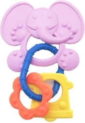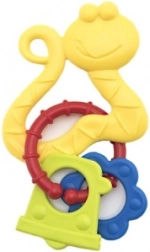 Diferitele suprafețe și inele masează ușor gingiile și, totodată, distrează prin sunetul zornăitorii.