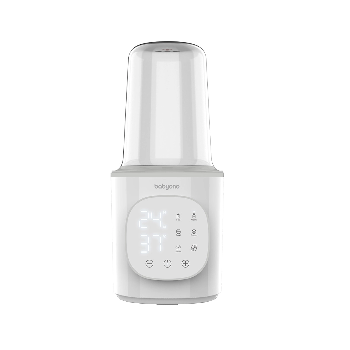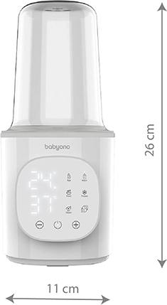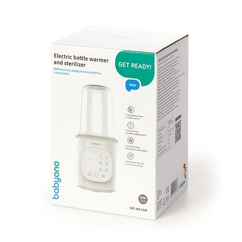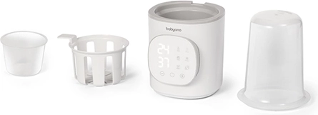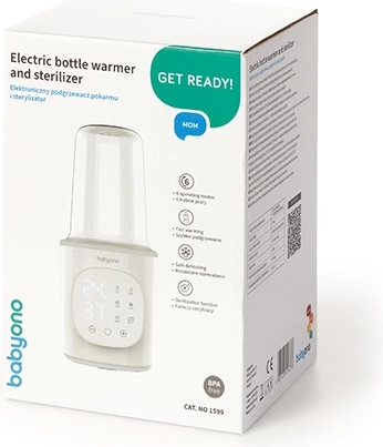 BabyOno 6‑în‑1 este un încălzitor și sterilizator multifuncțional care asigură încălzirea rapidă a laptelui, menținerea temperaturii, încălzirea alimentelor în borcănașe, decongelarea sigură și sterilizarea cu abur. Datorită puterii de 200 W și controlului precis al temperaturii, încălzește uniform și comod – pentru majoritatea tipurilor de biberoane și recipiente.