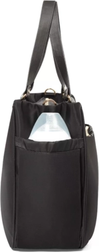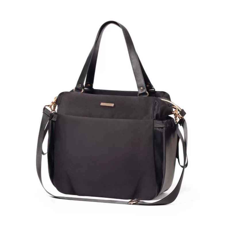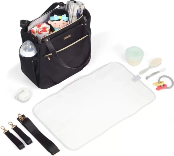Materialul rezistent și durabil, cu suprafață netedă, se curăță ușor și face față solicitărilor utilizării zilnice și schimbărilor de vreme. Mânerele confortabile, breteaua de umăr detașabilă și bretelele laterale pentru prindere pe cărucior oferă flexibilitate maximă la purtare. Pachetul include și o practică saltea de înfășat pentru îngrijire comodă în deplasare.