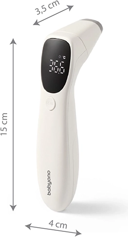 Termometrul infraroșu fără contact BABYONO permite o măsurare igienică și delicată de pe frunte și din ureche. Printr-o singură apăsare de buton obțineți un rezultat precis în 1 secundă, astfel încât puteți verifica ușor temperatura bebelușilor, copiilor și adulților, oricând, zi sau noapte.