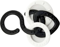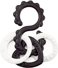 Aceste inele în formă de opt cu pandantive sunt concepute pentru a sprijini dezvoltarea vizuală a nou-născuților. Combinația contrastantă alb-negru este practică și eficientă pentru copiii a căror vedere este în curs de dezvoltare.