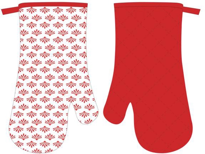 Mănușa are magnet pentru prindere rapidă pe frigider sau hotă și agățătoare practică pentru suspendare. Suprafața din 100% bumbac este plăcută la atingere, iar căptușeala din bumbac și poliester asigură confort și izolație termică. Elegantul design roșu-alb completează aspectul bucătăriei dvs.