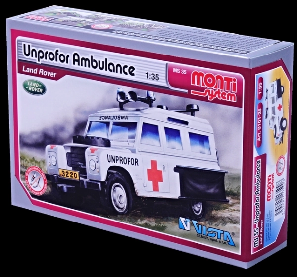 Setul de construcție Monti System oferă un model autentic de ambulanță UNPROFOR pe baza unui Land Rover la scara 1:35. Piesele se potrivesc perfect, astfel încât modelul se asamblează fără lipici și fără a fi nevoie de vopsire. Rezultă un kit curat și solid, potrivit atât pentru joacă, cât și pentru colecție.