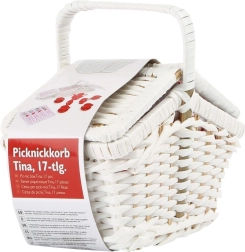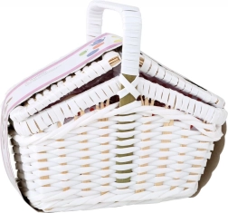 Coșul de răchită alb oferă spațiu de depozitare pentru întregul set, având o construcție solidă și un element decorativ ce oferă o autentică senzație de picnic.