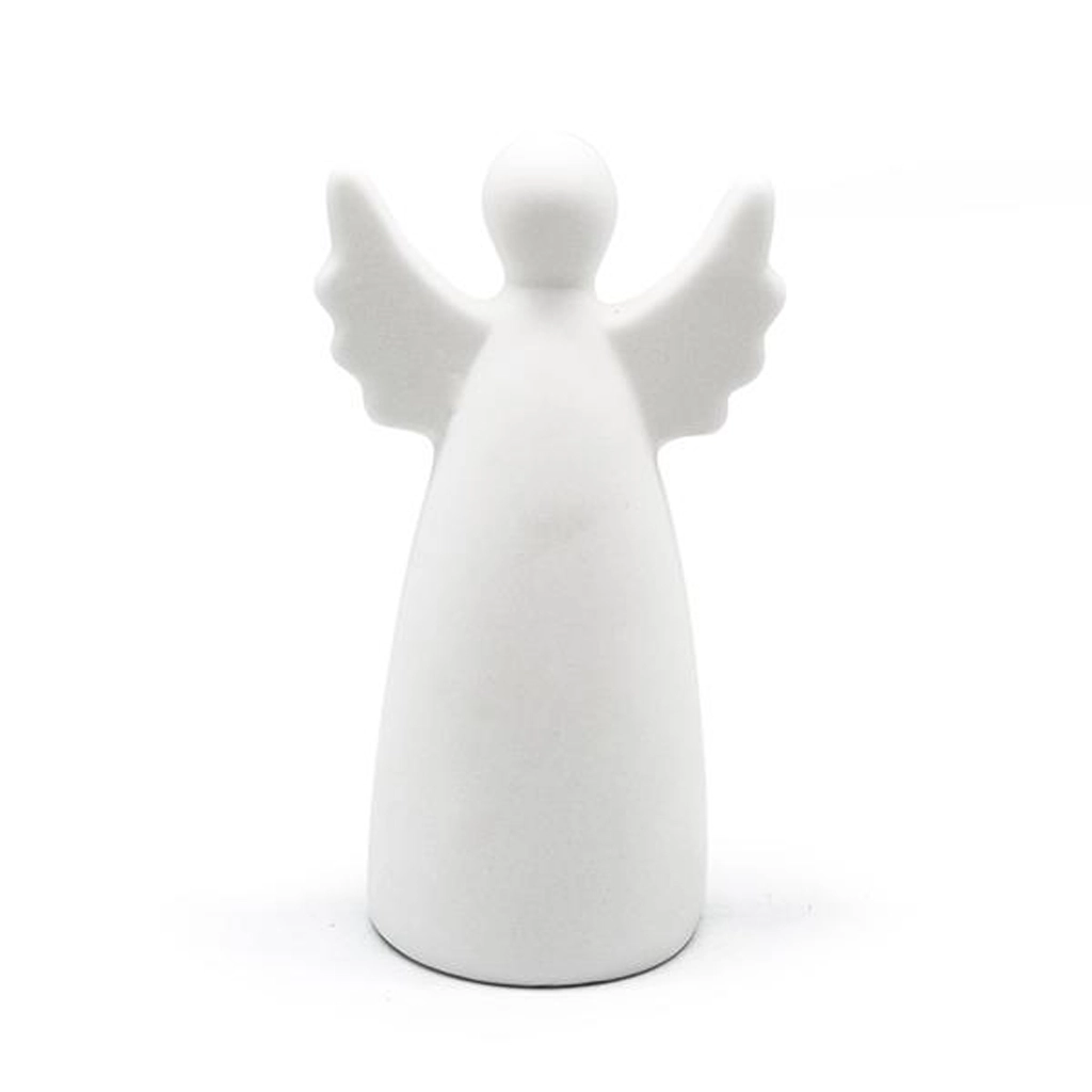 Aduceți liniște și lumină în casa dvs. cu un înger care strălucește discret, realizat din ceramică de calitate. Suprafața albă și lumina caldă LED subliniază designul său curat, potrivit atât pentru interioare moderne, cât și tradiționale. Decorațiunea este livrată inclusiv cu baterii, astfel încât trebuie doar să o așezați și să vă bucurați de fermecătorul efect luminos.