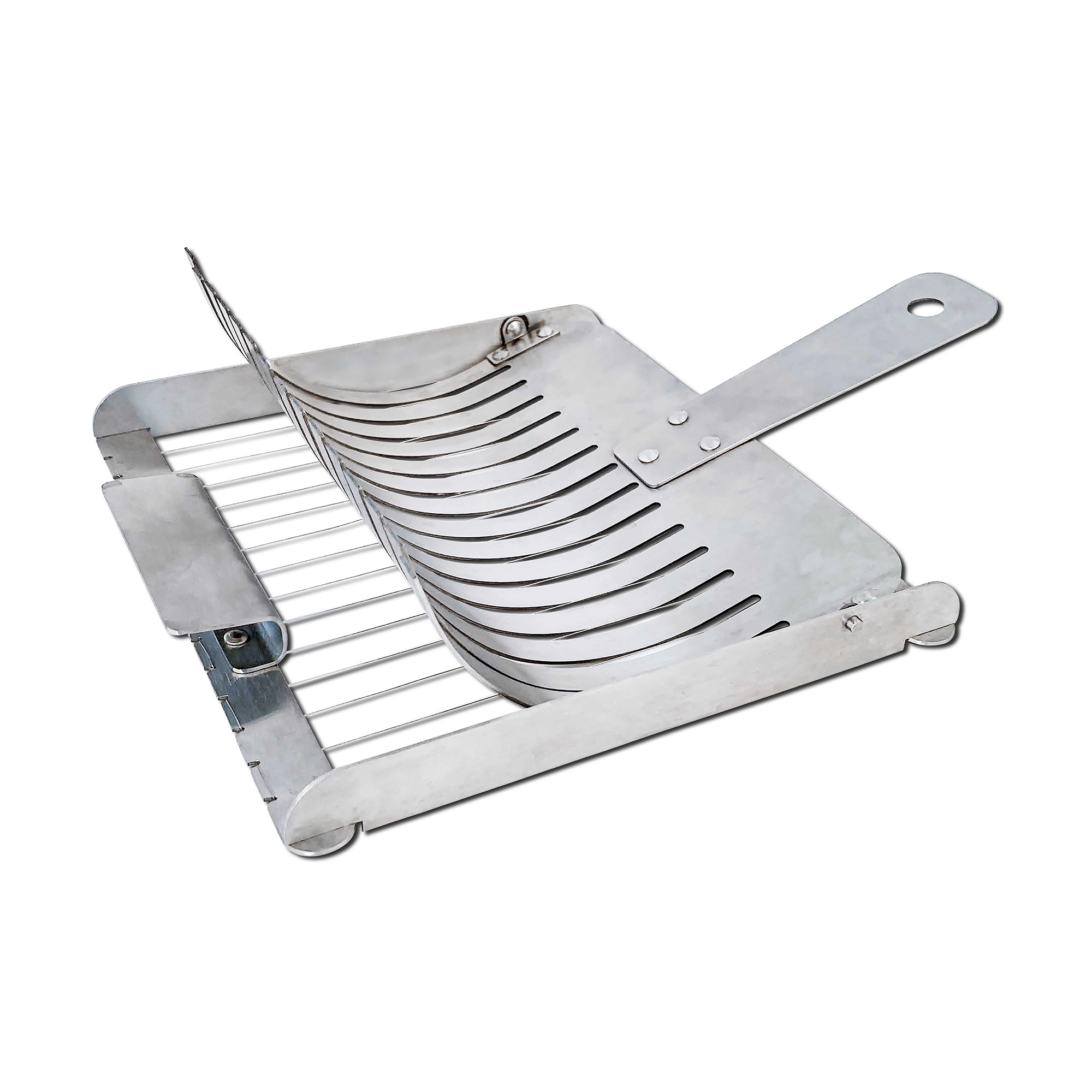 Un tăietor din inox pentru găluște practic și rezistent, cu dimensiunile 24 × 19 cm, de la KITCHISIMO, asigură tăiere rapidă și uniformă a găluștelor de pâine sau de cartofi, fără a le strivi. Datorită construcției solide din inox și a corzilor ascuțite, obții felii precise în doar câteva clipe.