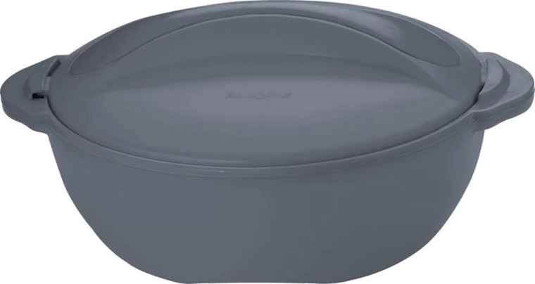 Un vas termic de 2 litri practic și stilat, în culoare gri modernă, păstrează mâncarea caldă sau rece mai mult timp. Ideal pentru utilizarea zilnică, picnicuri și servire acasă – rezistent, ușor de curățat și ușor.