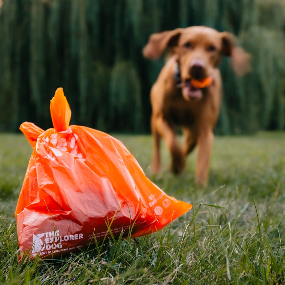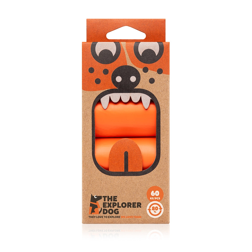Pungi practice și ecologice pentru excremente de câine EXPLORER DOG, în pachet de 60 bucăți, fabricate din 80% plastic reciclat, cu etanșeitate 100% și rezistență ridicată. Datorită culorii portocaliu intens le găsești ușor, iar dimensiunea universală 22 × 33 cm se potrivește pentru majoritatea raselor și a dozatoarelor.