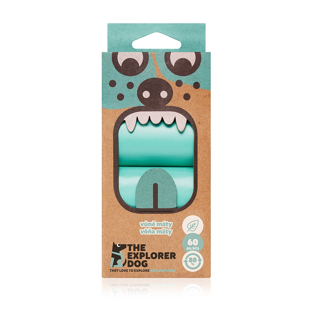 Pungi practice și ecologice pentru excremente de câine, cu un ușor parfum de mentă, în pachet de 60 bucăți. Sunt 100% etanșe, rezistente și suficient de mari pentru o curățare comodă. Fabricate din 80% plastic reciclat și ambalate în carton reciclat, potrivite pentru toate dozatoarele uzuale.