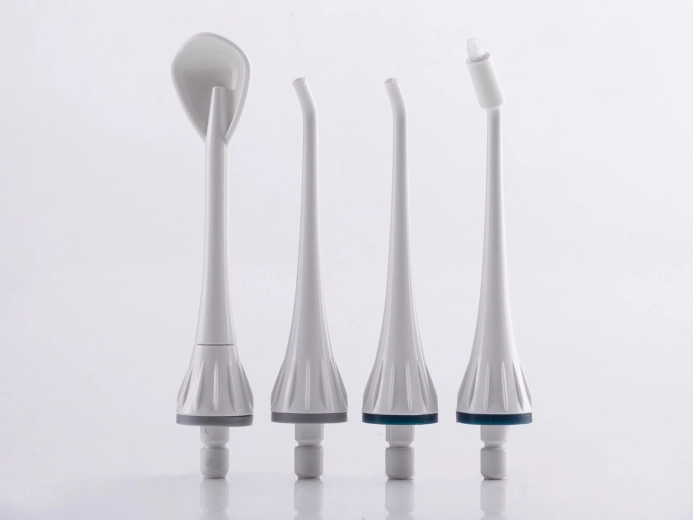 În pachet, 4 duze specializate cu rotație la 360° pentru acoperire maximă: două duze standard, o răzuitoare pentru limbă pentru o respirație proaspătă și o duză ortodontică pentru curățarea temeinică în jurul aparatelor dentare și al coroanelor.