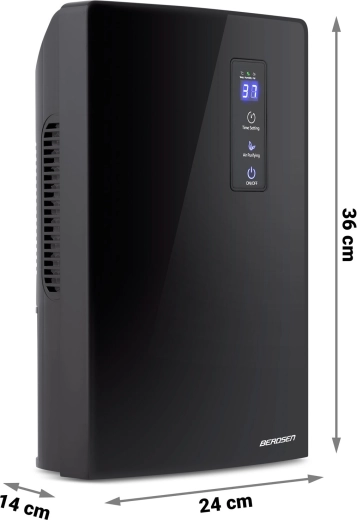 Mențineți acasă un climat sănătos, fără mucegai, mirosuri și umiditate excesivă. Berdsen BR-20 combină dezumidificare performantă (până la 700 ml/zi) cu dezinfecție UV activată prin butonul Air Purifying, care contribuie la eliminarea microorganismelor din aer. Datorită funcționării silențioase (max. 34 dB) și dimensiunilor compacte, este potrivit pentru dormitoare, dressinguri, băi și birouri mici.